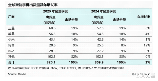 10月即将结束,手机市场的相关调研报告也相继出炉。其中,市场调研机构Omdia的数据表明。在2025年第三季度的出货量中,三星依然稳居全球第一。紧随其后的也依然是苹果和小米。